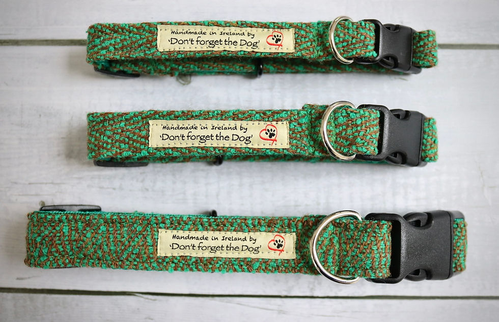 Multi Gunclub check tweed in red, blue and taupe with hints of olive green and brown on complimentary red cotton backing fabric, NON TIE BANDANA These Bandanas slide on to your dogs own collar so there is no safety concern about catching any fasteners when they are out galloping about.